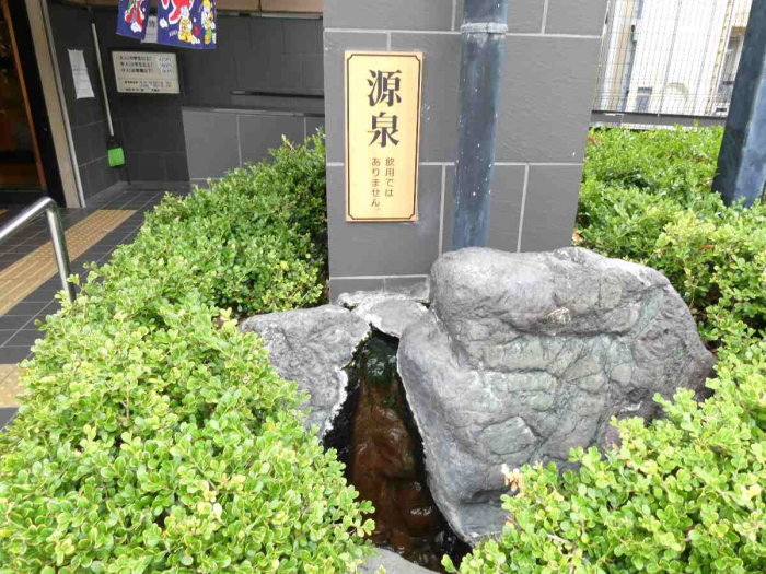 入口前には源泉が流れている箇所があり少し触ってみると、ちょうどよい温度ととろっとしたお湯で肌がつるつるになりそうです。