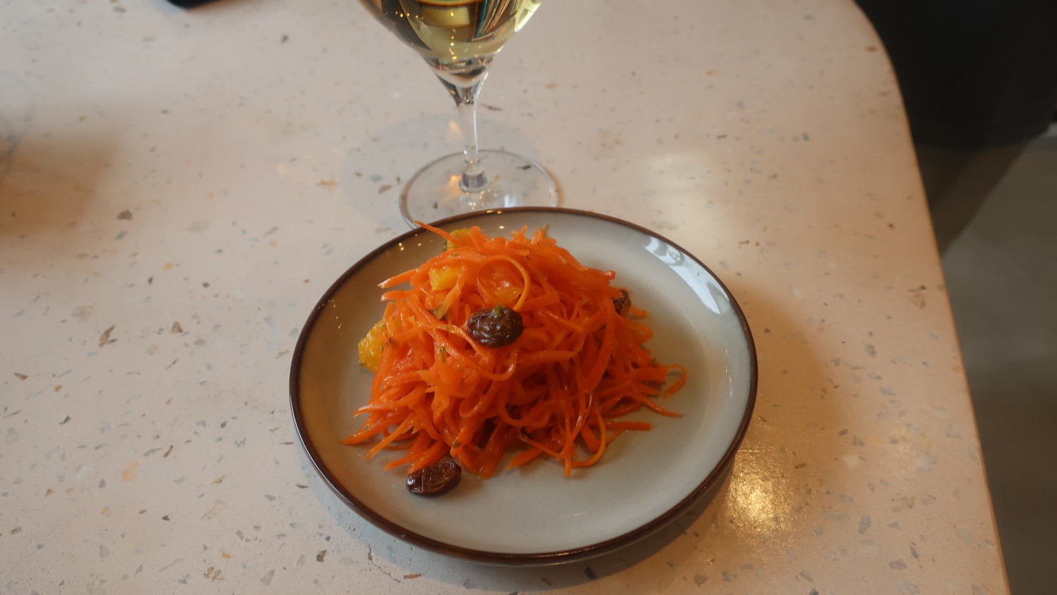公園の入り口前の道路をさらに西へ向かうと、「昼のみとお惣菜 apeti」というお店があり、明るい時間からワインを飲んでいけるようでした。お店に入ると、店内には子ども向けの絵本やおもちゃがあります。冷蔵ケースにはおいしそうな惣菜が並び、好きなものを選んでワインと合わせていただけるとのこと。キャロットラペとおすすめしてもらった白ワインで優雅に乾杯します。