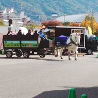 午前中には、今年で20周年を迎えた「JRAウインズ小郡」(JR新山口駅から車で約10分)とコラボした「SLやまぐち号」の出発式が新山口駅にて行われ、特別に制作されたオリジナルヘッドマークがお披露目された。オリジナルヘッドマークはSLに乗ったターフィーの可愛らしいイラストが描かれたデザインで、実際の掲出はないがウインズ小郡館内で年内一杯展示される。