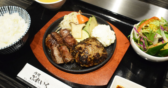 中でも1番人気は、和牛サイコロステーキとハンバーグが一皿で楽しめる、「和牛サイコロ+ハンバーグセット」です!