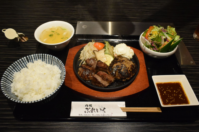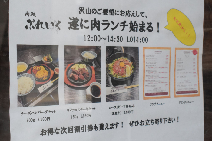 肉処ぶれいくのランチメニューは、ハンバーグやサイコロステーキを中心に、ローストビーフ丼セットも!