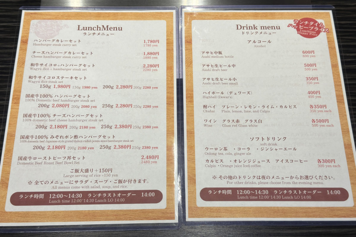 ランチタイムの12時から14時30分(L.O.14時)は、一部のドリンクがサービス価格で提供されているのも嬉しい点です。