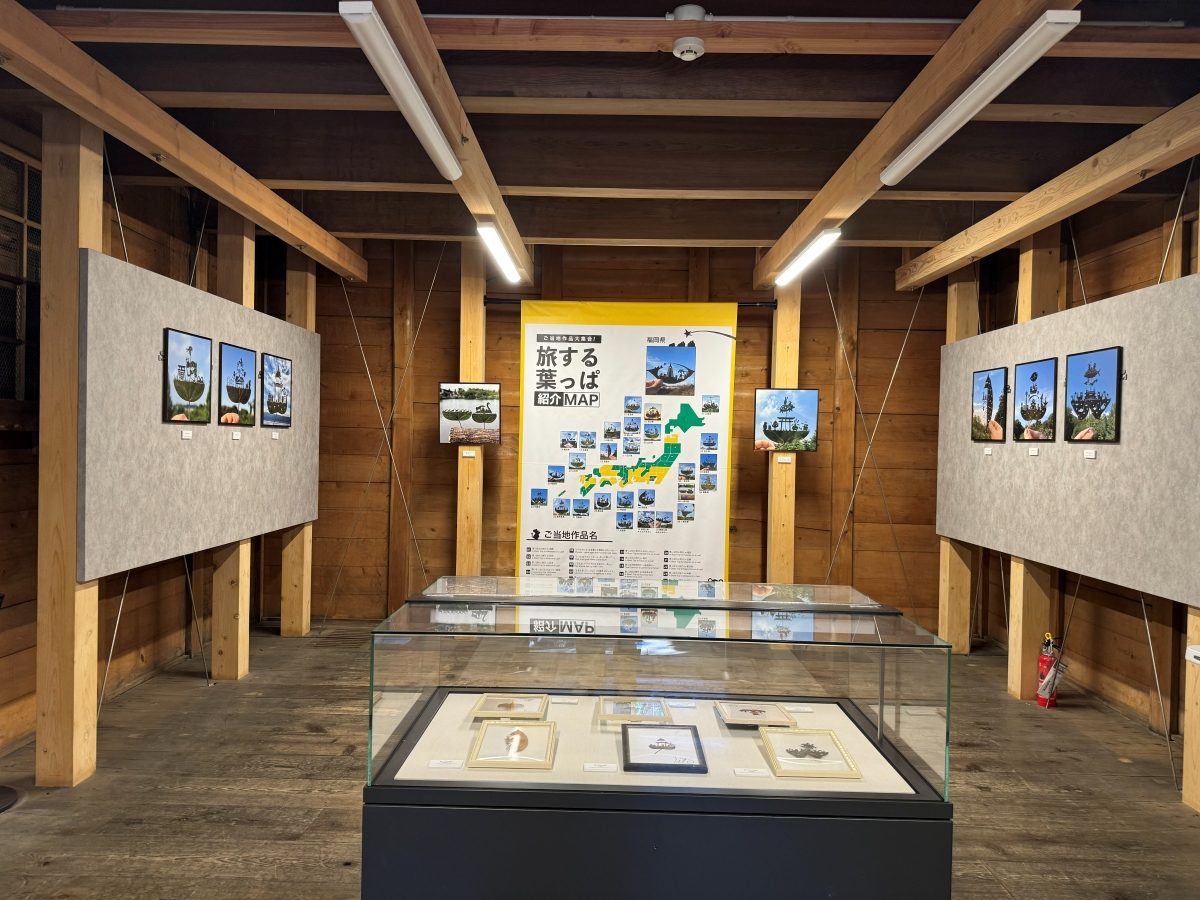 その後は、日本で2番目に古い鉄筋コンクリート建築という南蔵へ。ここには、福岡県をテーマにした作品など、<旅する葉っぱシリーズ>の切り絵が展示されています。