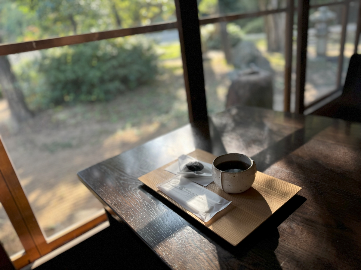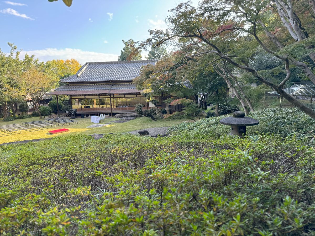 時折視界に入る旧安川邸の日本家屋と庭園が、より一層非日常的な雰囲気をつくり出していました。