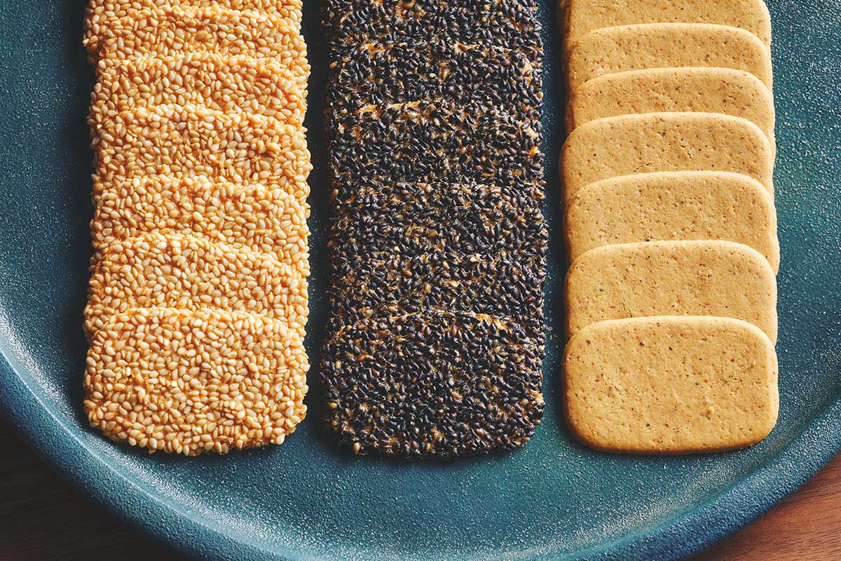 フレーバーは、白ごま・黒ごま・うま味の3種類をラインアップ。一口食べれば、直火焙煎した白ごまや黒ごまのつぶつぶとした舌触りや香ばしさ、そしてコク深い余韻が広がります。上品な見た目と食べ心地で、相手やシーンを選ばない贈り物としてもおすすめです。