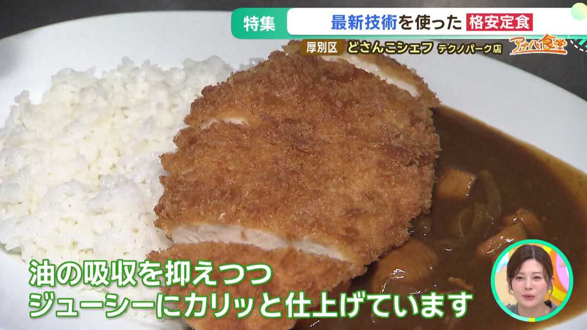 続いて、カレー好きの増田さんが注文したのは「チキンカツカレー」(750円・税込)。 「カツが大きいですね!」と興奮気味の増田さん。もちろん、このチキンカツも「分子調理機器」を使って揚げられています。