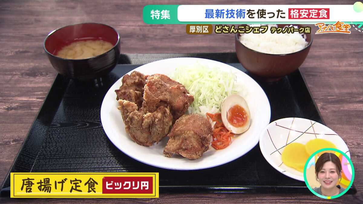 ここで調査するのは、看板メニューの「唐揚げ定食」。運ばれてきたお膳を見て、二人は驚きの声を上げます。