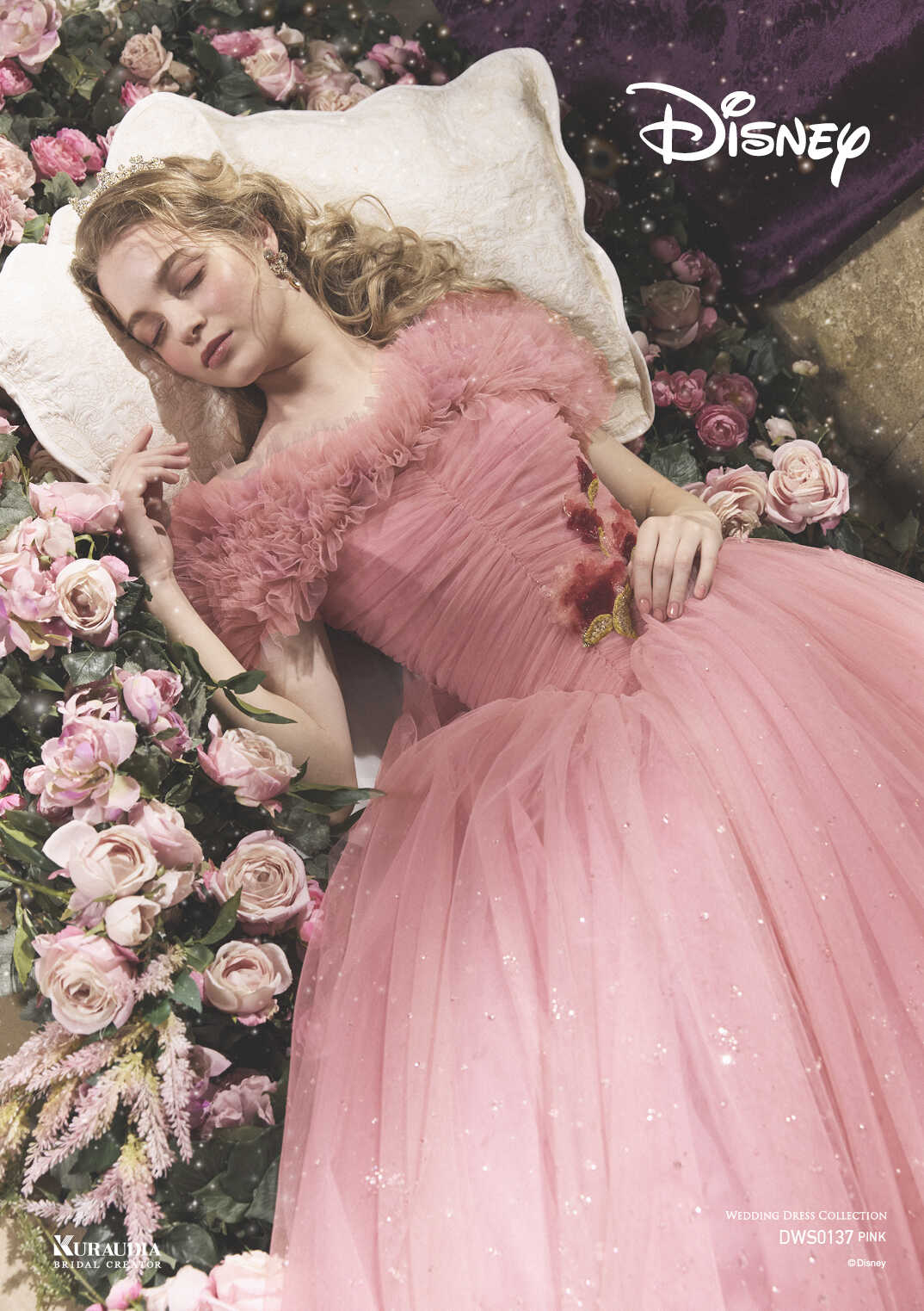 エレガントなローズピンクにときめく「オーロラ姫」デザインのドレスを、詳しくご紹介します。