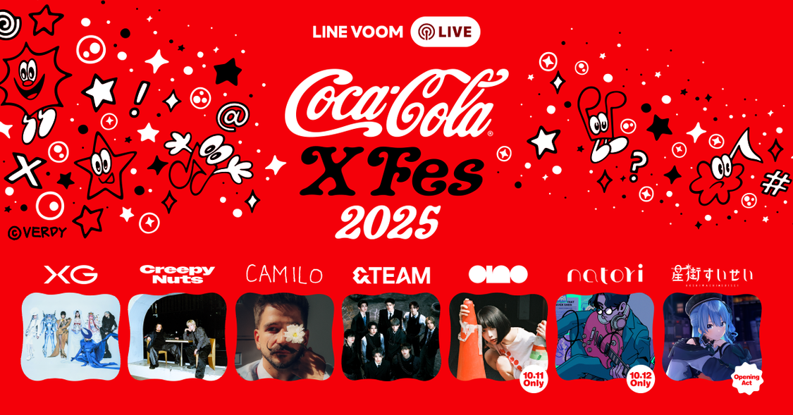 配信はコカ・コーラ公式「LINE VOOM」アカウント(https://lin.ee/G9gCEoq/pr)で行われ、XGによる熱狂のライブステージを全編生中継。星街すいせいなど人気アーティストのライブ映像も特別に配信される。