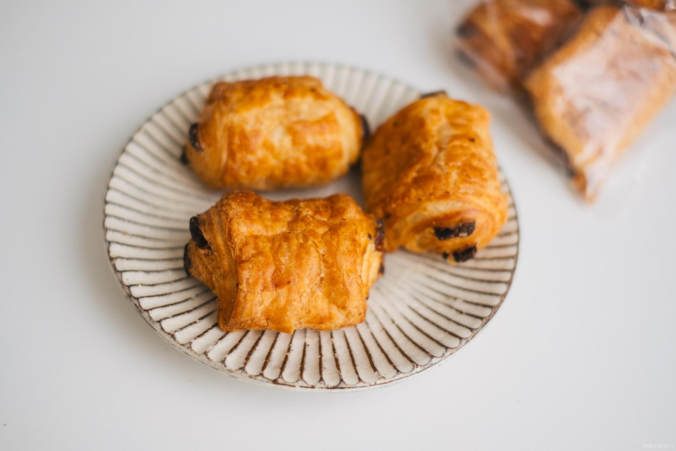 子どもの朝食やおやつにおすすめの「ミニパンオショコラ」。食べ応えのあるデニッシュ生地が魅力です。サクサクした生地に、ほどよい甘さのビターチョコレートを投入。飽きのこない味わいで2口くらいで食べられる大きさも人気です。