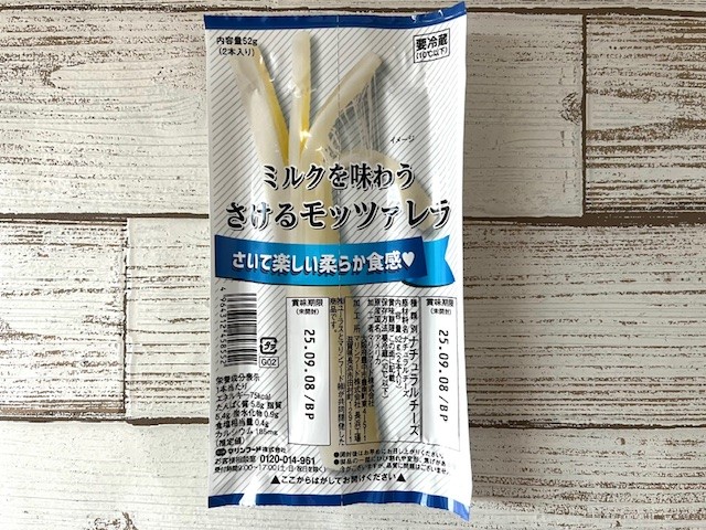 価格は1パック2本入りで税込160.92円。原材料はナチュラルチーズのみで、むっちりとした食感と濃厚なミルクの風味を存分に楽しむことができます。
