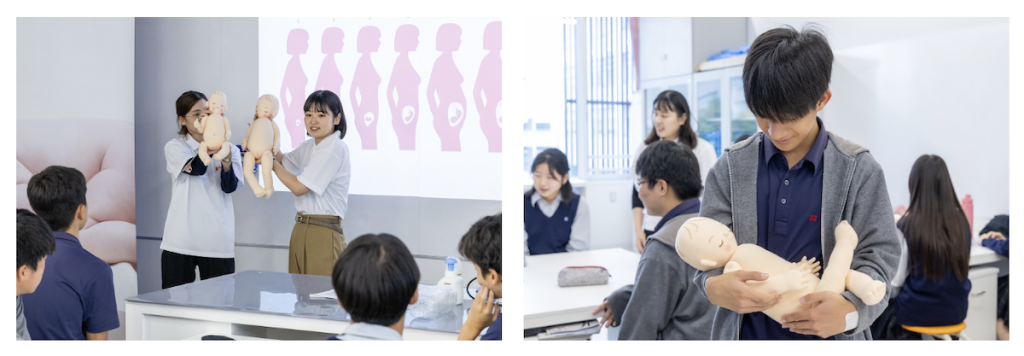 今回の「赤ちゃんを知る授業」特別版出前授業では、生徒たちが赤ちゃんの特徴やママ・パパの育児の実態を具体例を通じて知ることで、命の尊さや発達の過程を学び、育児の素晴らしさや大変さへの理解を深めることを目指した。赤ちゃん人形の抱っこや妊婦ジャケット、ベビーカー体験などを通じて、ママ・パパの外出時の不安や戸惑いをリアルに理解することで周囲の小さな配慮が育児の支えになることを学習した。