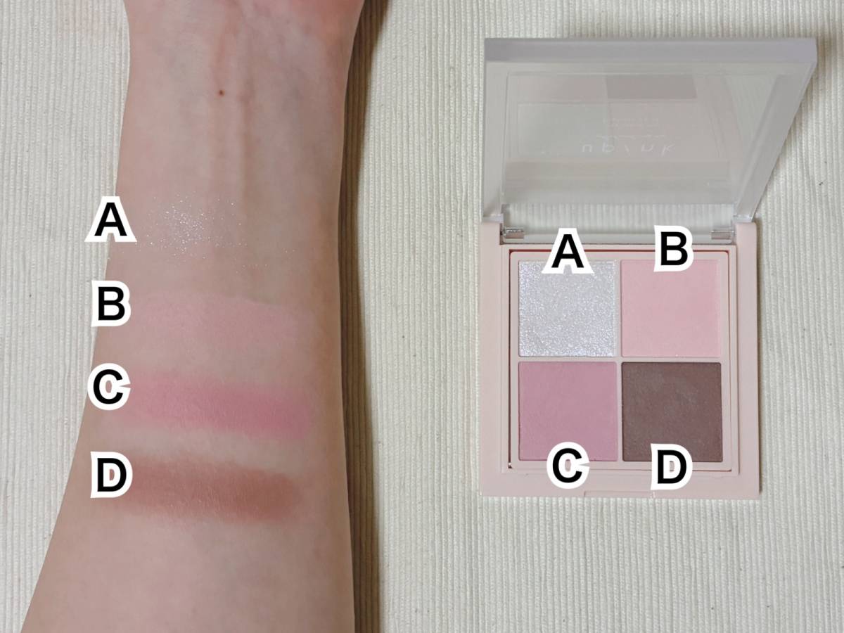 upink「シャインオンステージアイパレット」〈MC02 ラベンダーリボン〉のスウォッチです。