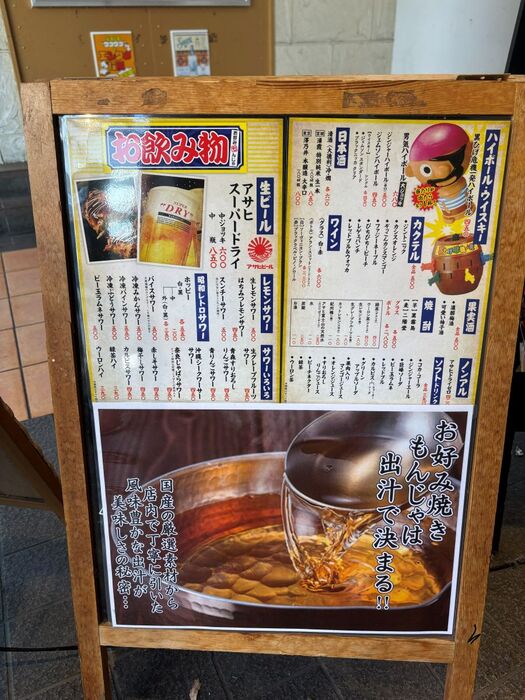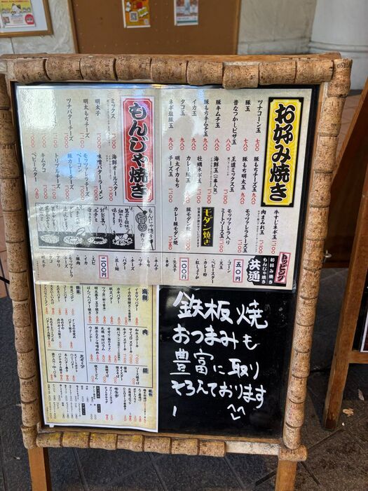 半額キャンペーンをやっている『お好みもんじゃ 立川店』のメニューはこんな感じ。