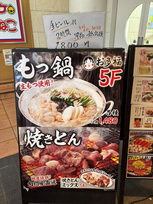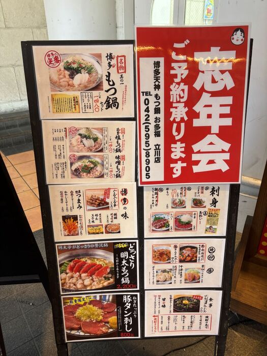 もつ鍋などが楽しめる『博多天神 もつ鍋 お多福 立川店』はこんな感じのメニューみたい。
