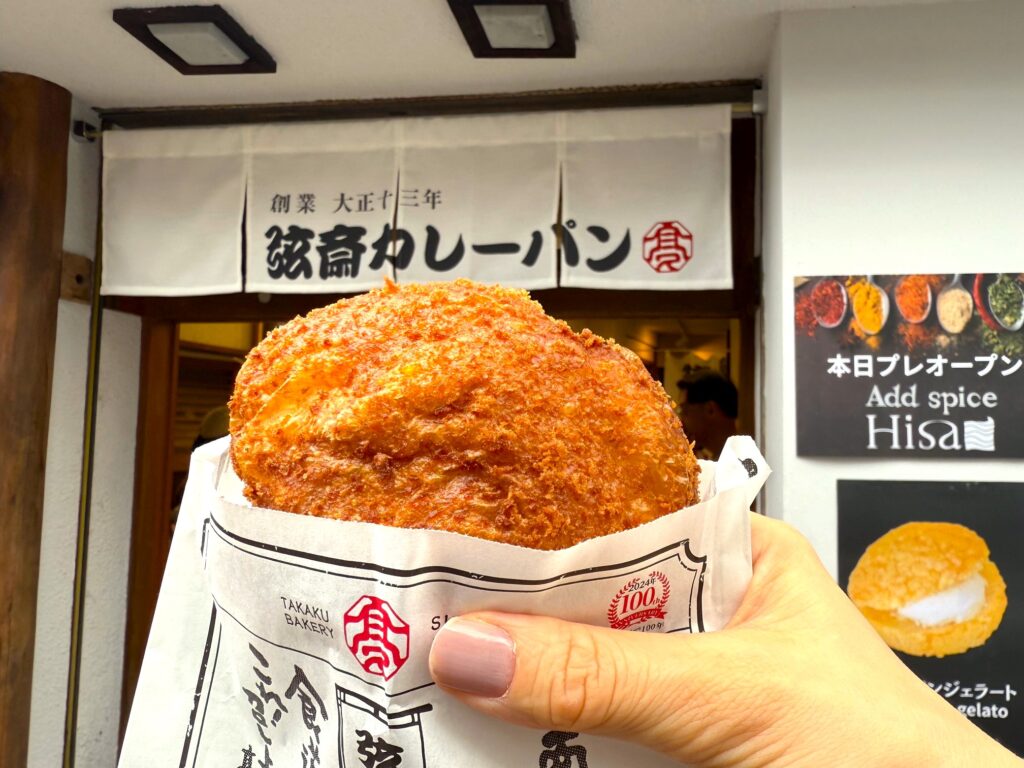 大人気の弦斎カレーパンは、店頭で揚げたてが提供されるのでライブ感たっぷり。