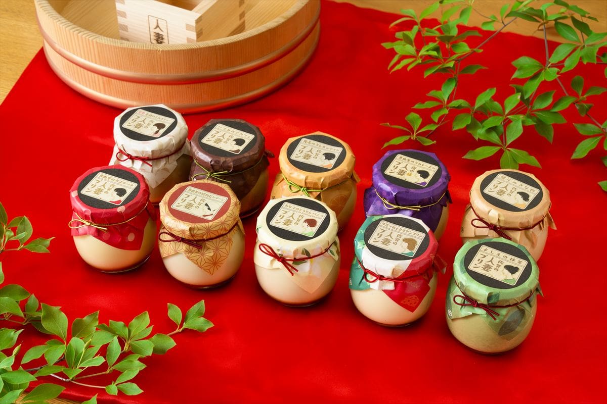 味は、真由美のカスタード、みな子のとろりんバニラ、真由美の昭和ビンテージ、リミーのイタリアンプリン、真由美のラムレーズン、いづみのデカフェ、光子のクレメンティン、美穂のミルクティー、よしえの抹茶、慶子のきな粉の10種類!