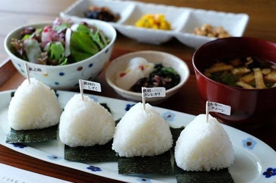 目玉はなんといっても、全国の個性的なお米を炊き上げて、握ったおむすび!