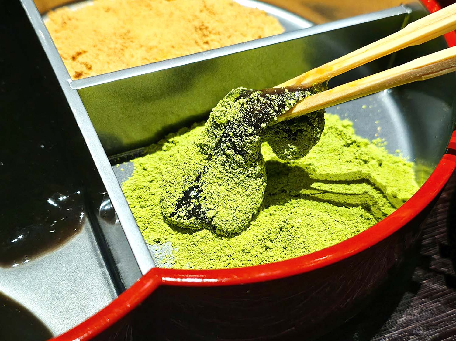 食感、味わいの変化をいろいろと楽しめて大満足の蕨もちです。