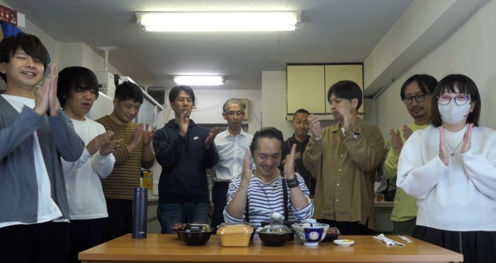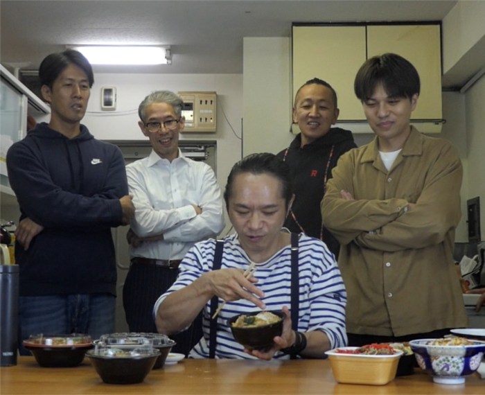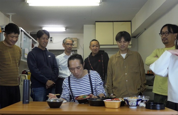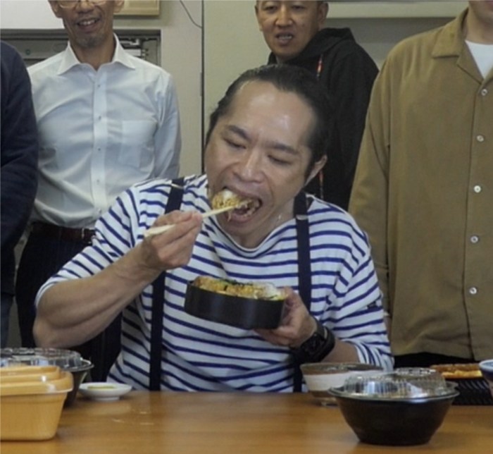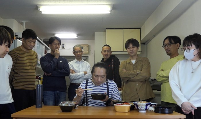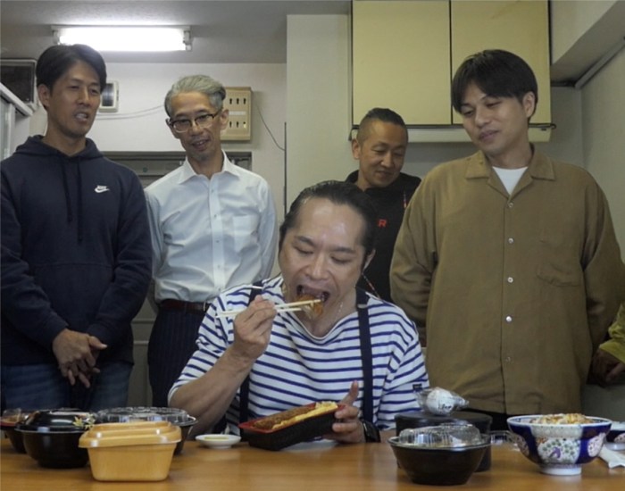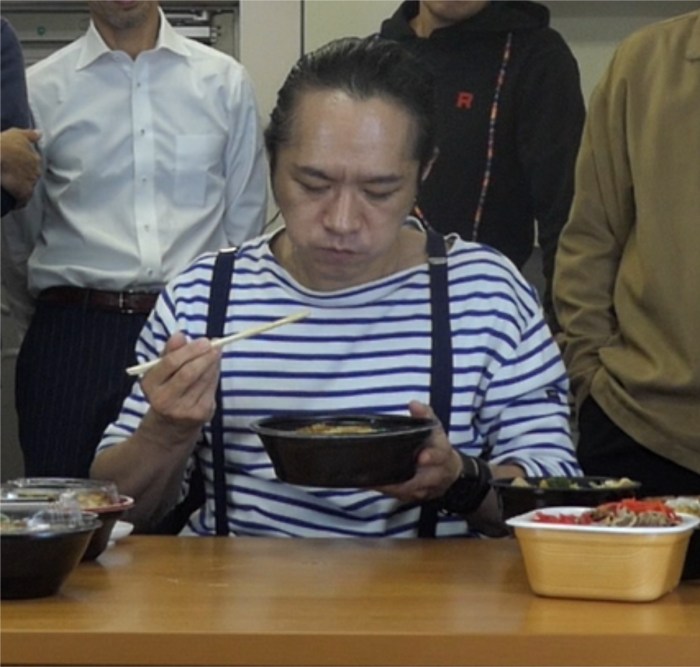 サンジュン「編集部の目の前のそば屋さん、更科で出前を取りました。やっぱ食べてもらうならアツアツでしょ。そうでなきゃ、美味しくないもの。みんな冷めたかつ丼を用意しているでしょ。その時点で甘い。やっぱアツアツじゃないと」