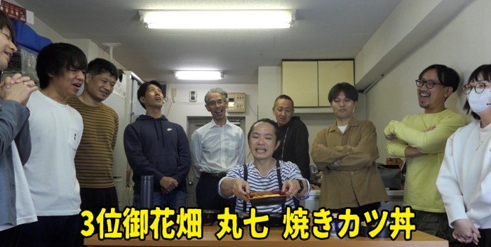 御花畑「私、普段そこまで揚げ物を食べないから、かつ丼を知らないんですよね。それで今日欠席に中澤記者に尋ねたところ、「僕が参戦するなら丸七にするなあ」と言っていたので、丸七で買ってきました。ですので、負けたら中澤記者のせいです」