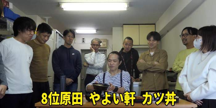 前回の「焼いも」、前々回の「焼きそば」と、物議をかもすジャッジが続き、メンバーの間では羽鳥に対する不信感が高まったわけだが、今回はどうなるのか? では行こう、かつ丼バトル開幕です! 今回も動画があるよッ!