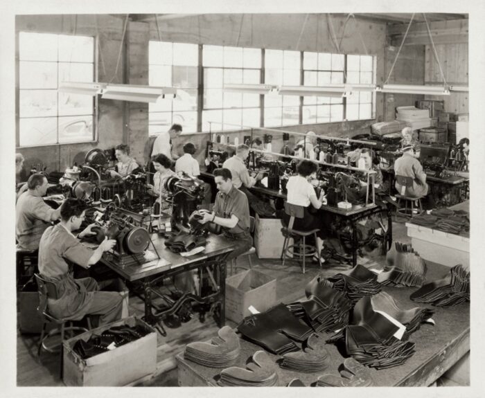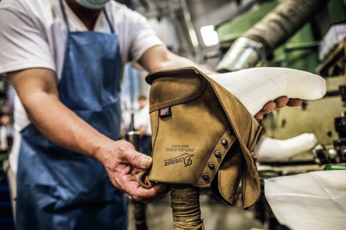 写真は「ダナー」の工場における生産風景。モデルによって生産工場を使い分けているが、[ダナーライト]と[マウンテンライト]の2大名作に至っては、いまもなおアメリカ・ポートランドに拠点を構える自社工場での生産を続けている。上質な素材のみを使用し、熟練の職人によるクラフトマンシップによって生み出されるプロダクトは、しっかりと手入れをすれば“一生モノ”として愛用することができる。
