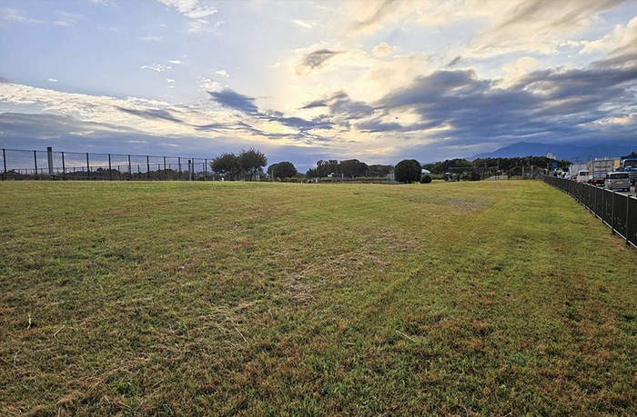 立地条件や広さなど事業者側の意見を考慮し、建設予定地を芝生グラウンド北側、県道45号沿いの区画とした。予定地の広さは、およそ1650平方メートル。区画内には2店舗を構えたり駐車場を整備することも可能となる。
