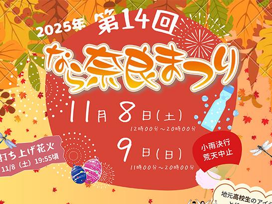 毎年夏終わりの9月頃のイベントとして馴染みのある「なら奈良まつり」(奈良商工会議所青年部主催)が、今年は11月8日(土)9日(日)の2日間、平城宮跡で開催されます。