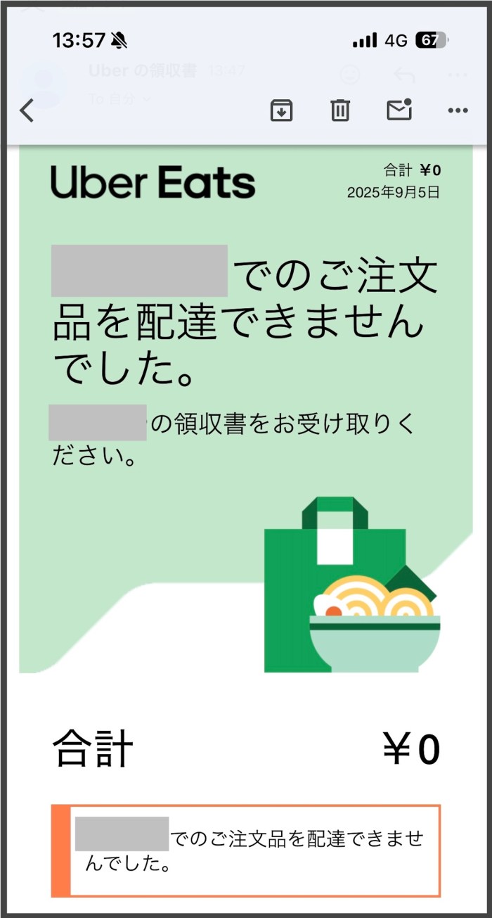 どういう流れなのか不明だが、結果的に料金はかからなかった。散々待ったのに一方的に「配達の失敗」で注文がキャンセルされたらしい。チャーシュー麺は幻と消えた。ナメんなよ。