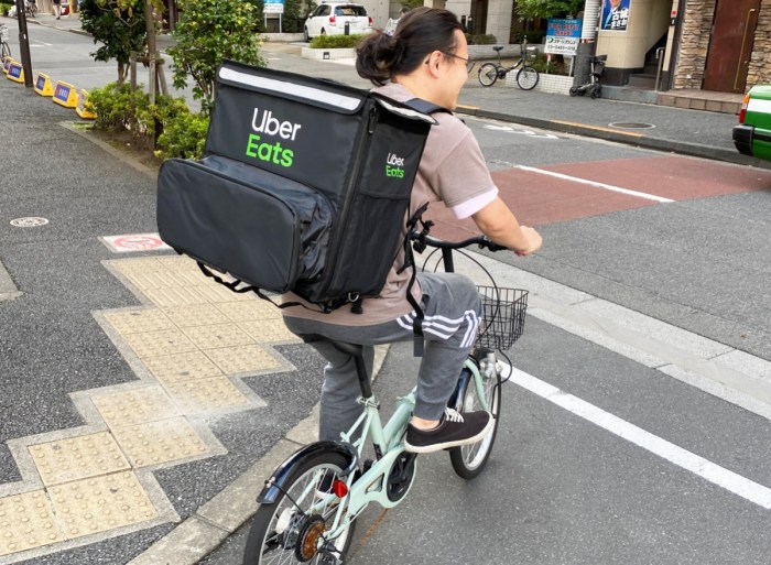 ウーバーイーツの配達員を都内で見かけることは多いが、うちの近所(北関東)ではまず見たことがない。