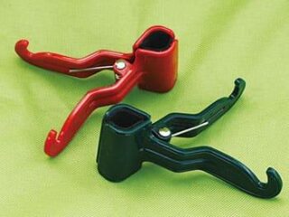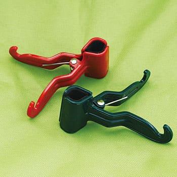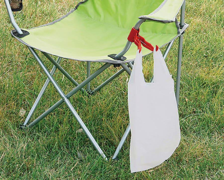 ポールフッククリップ 椅子のフレームに取り付けて使うクリップ式のハンガー。ビニール袋をかけてゴミ袋にしたり、荷物をぶら下げて地面に直置きしないようにもできる。