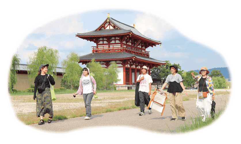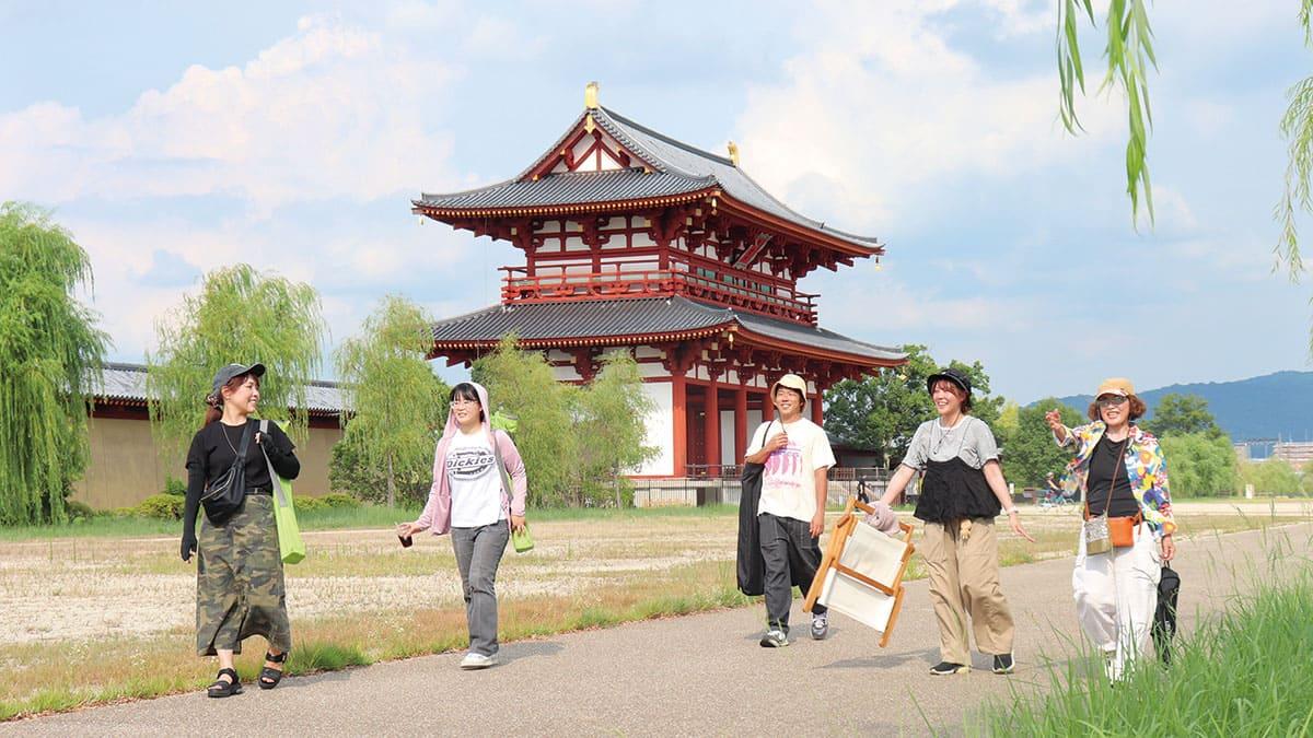 1人1脚ずつを持って平城宮跡歴史公園を探索!
