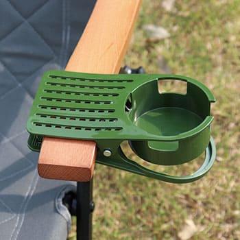 ドリンクホルダー 椅子のアームレストにクリップ式で取り付けられるドリンクホルダー。スマホなどの小物を置くスペースにも◎。