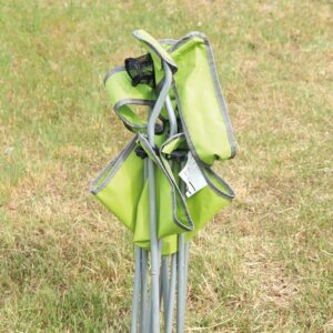 展開するだけで簡単に使えて、付属の袋に入れて肩にかけて持ち運ぶことができる。ドリンクホルダー付きのものも