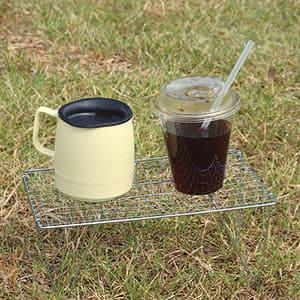 スタンド付き焼き網 脚が折りたたみ式の小さな焼き網は、ミニテーブルとして利用可能。メッシュなので軽くて持ち運びも便利。
