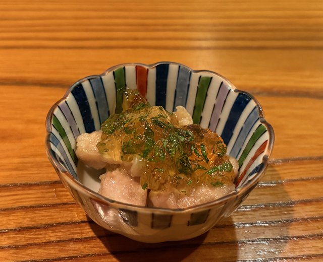 揚げ鶏とポン酢ジュレは、ポン酢と紫蘇の香りが爽やかで、ごはん前のアテにちょうどいい一皿。