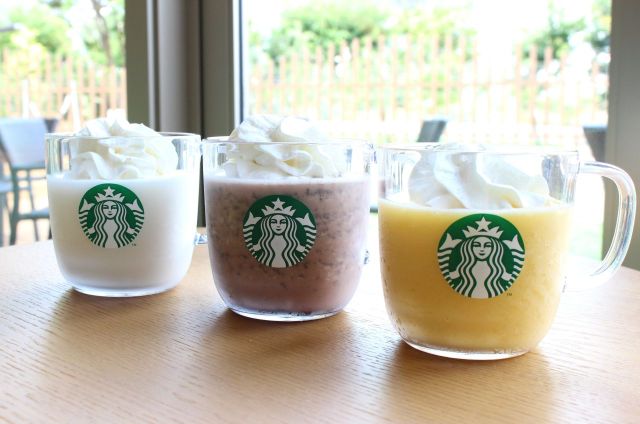 左から「キッズ バニラ クリーム フラペチーノ」、「キッズ チョコレート フラペチーノ」、「キッズ マンゴー&フルーツ フラペチーノ」(各440円・12歳以下限定)