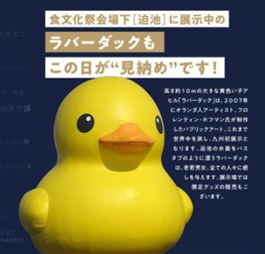 今話題の、大人気みんなのアイドル「ラバーダック」も、この日が見納めです!!!