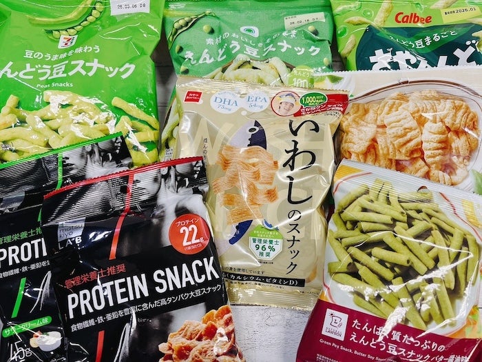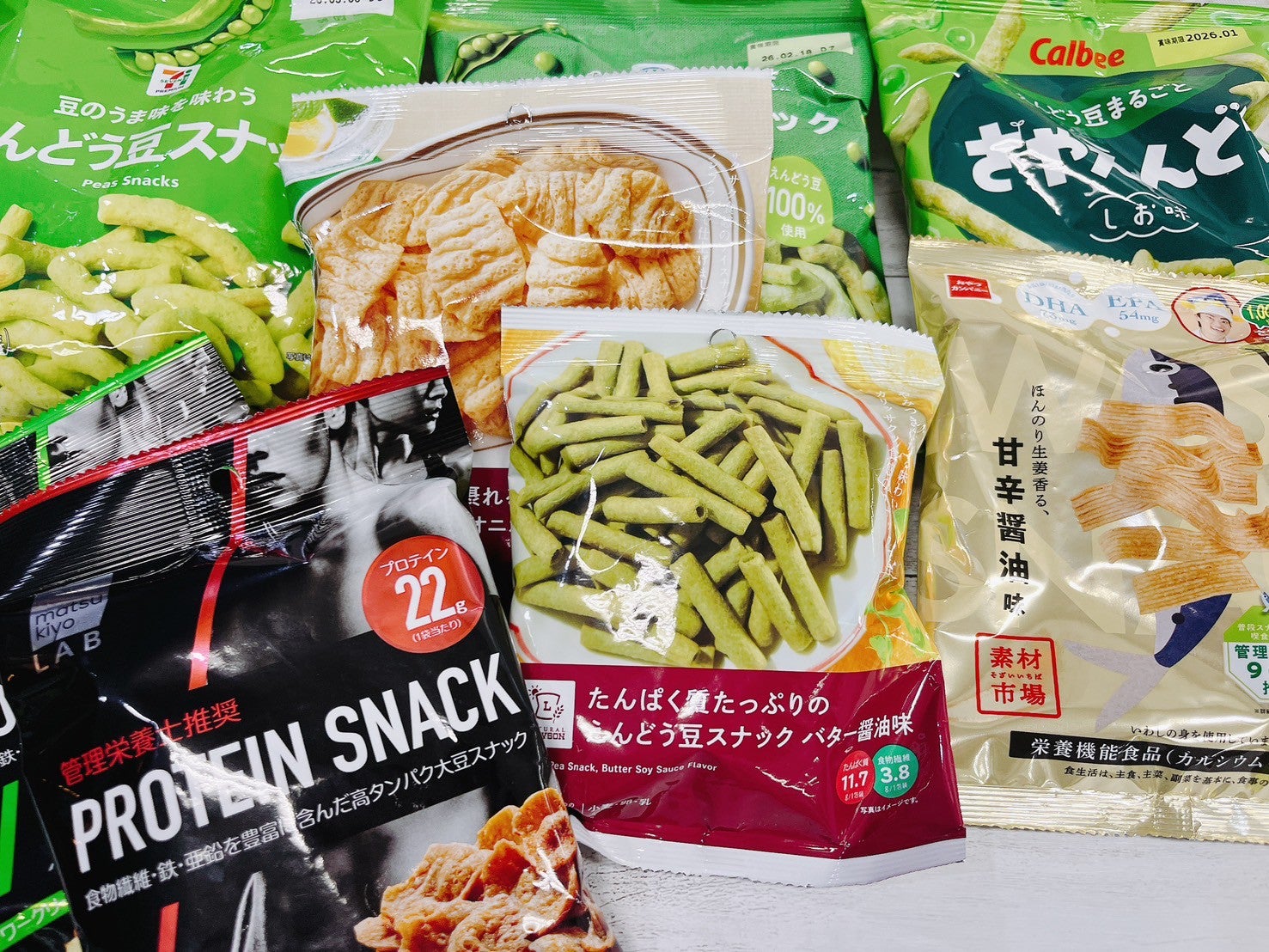 ほか、各社の「えんどう豆スナック」はたんぱく質量が多い商品が!