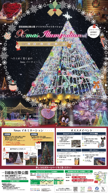 2025年12月6日(土)~25日(木)の期間中、長岡市「国営越後丘陵公園」の緑の千畳敷・花と緑の館で『Xmasイルミネーション』が開催されます。