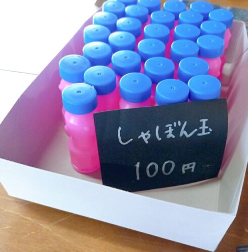 本の他にも地元のお茶やラムネ、シャボン玉も売ってます。