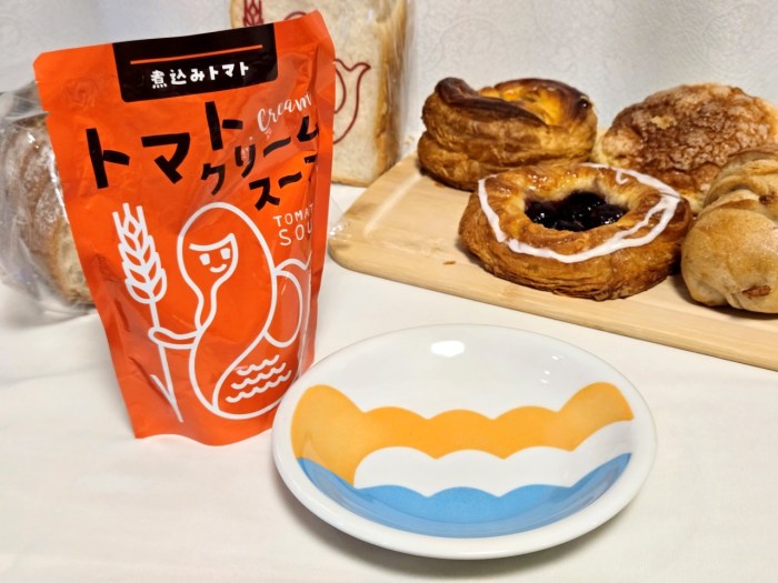 そして「トマトクリームスープ」は、トマトの酸味を残しつつもとてもクリーミーに仕上がっている。シンプルなパンにめちゃくちゃ合うやつだなこれ!