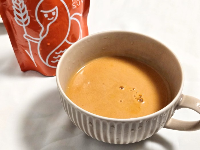 タダで貰ってるから全然味には期待してなかったけど、売ってたら普通に買いたくなるくらいおいしいスープだ。これが非売品なのもったいないぞ……!