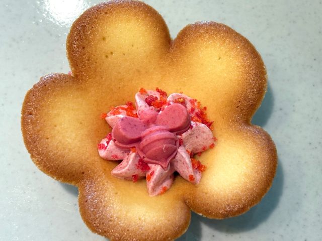 「花ラング ベリー」は、甘酸っぱくフルーティーな味わい。クリームとトッピングのチョコレートに、ストロベリー、ラズベリー、ブルーベリーの3種のパウダーを使用。ハチをモチーフにしたチョコのデザインが、なんともキュート!