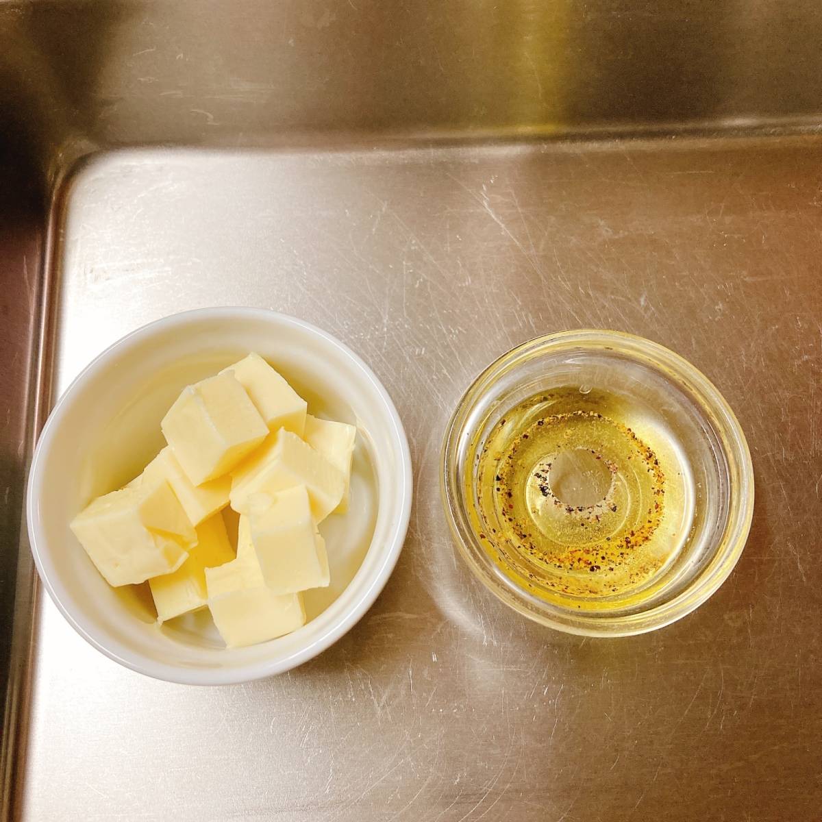チーズは混ぜやすいように、小さめにカットしておきましょう。