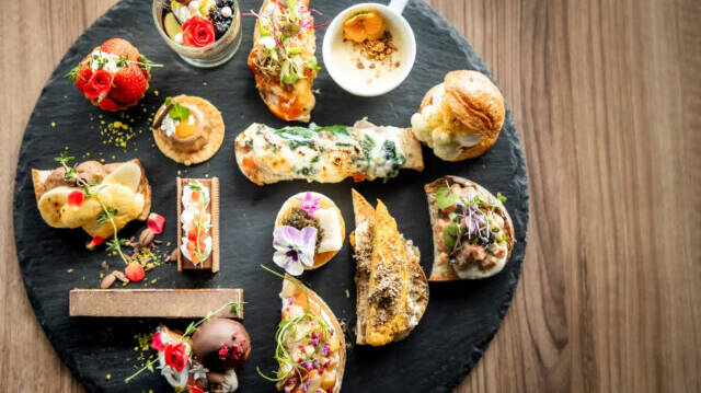 周りには食用花やハーブを散らし、自然豊かな北海道を表現! 写真映えも期待できそう。