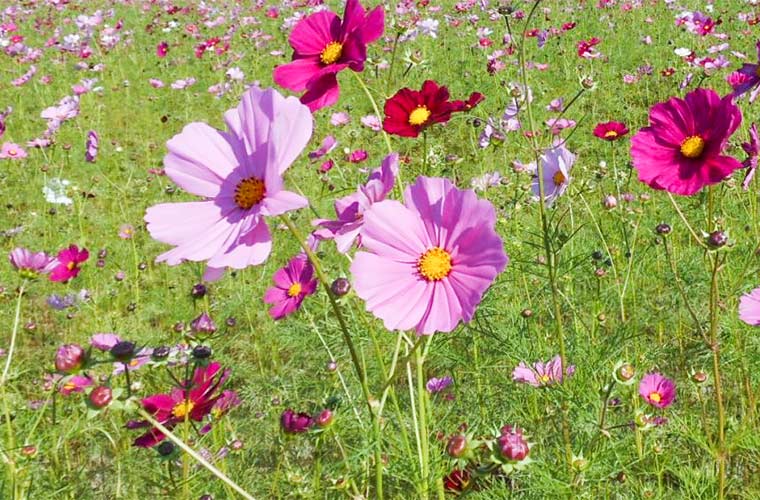 ※今年は猛暑の影響で、コスモス畑の規模縮小や花の生育の遅れなどが予想されています。事前に開花状況を調べてからお出かけすることをおすすめします。