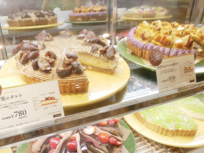 今の時期は、秋の味覚・栗やかぼちゃを使った季節限定タルトが登場しており、見ているだけでも幸せな気分に。