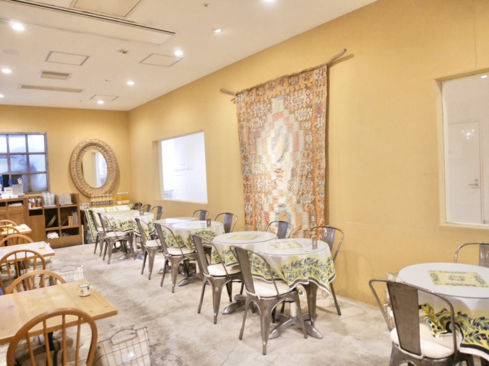 南フランス・プロヴァンス地方をイメージして作られた店内は、温かみのある色合いの壁紙やテーブル、海外らしい柄のテーブルクロスが配され、非日常のひとときを過ごせる空間です。